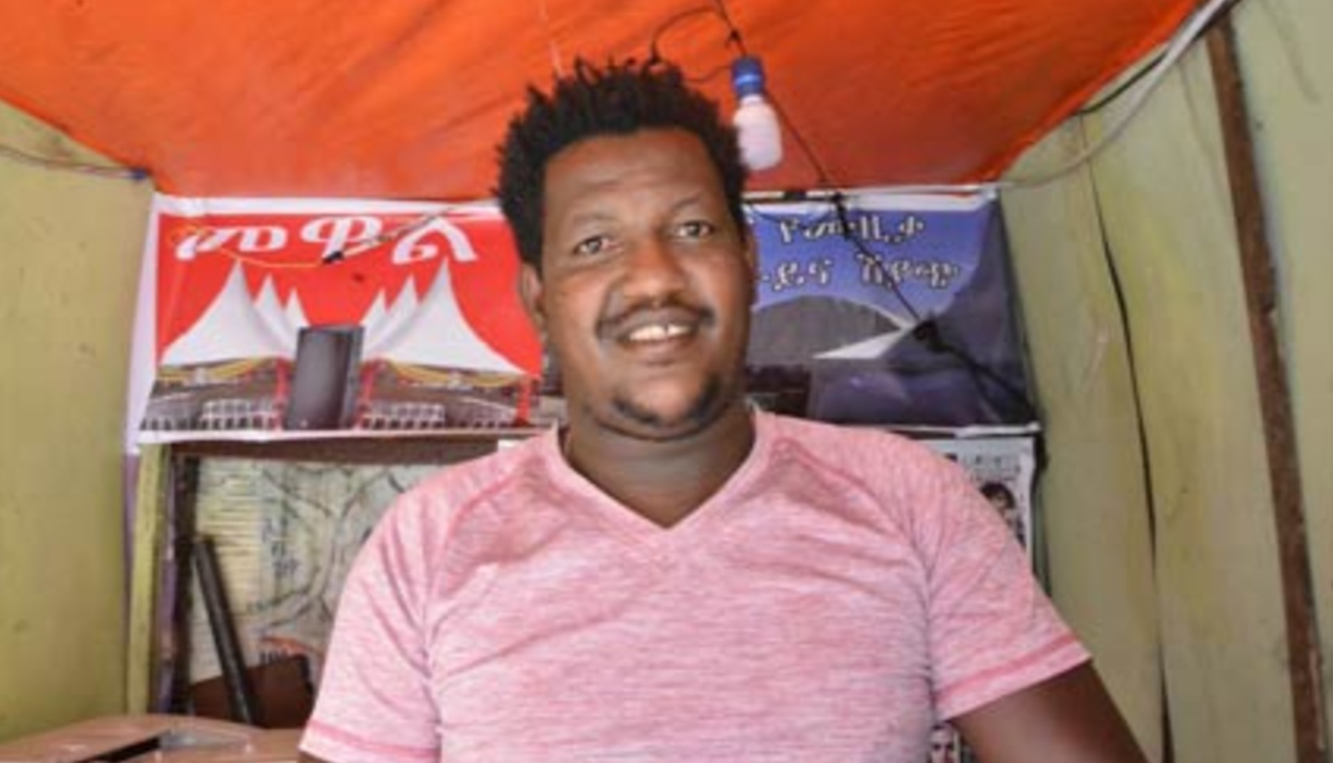 Mewale, 30, stands in front of his equipment rental shop, which he was able to start up thanks to the support of ChildFund’s local partner.