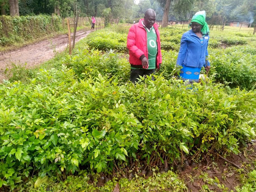 Mr. Musungu handing over seedlings donated by the agency
