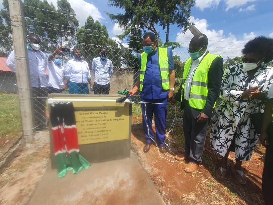 The project was commissioned on the Saturday 19th December, 2020 by the Acting Chief Executive Officer for Lake Victoria North Water Works Development Agency Daniel Bundotich on who represented the CAS Ministry of Water, Sanitation and Irrigation Dr. Andrew Tiumur. Present during the function was the area constituency Member of the National Assembly Hon.Vincent Tuwei, CEC in Charge of Water, Nandi County, the Principal St. Stephen Kositany Secondary School and a host of local leaders.